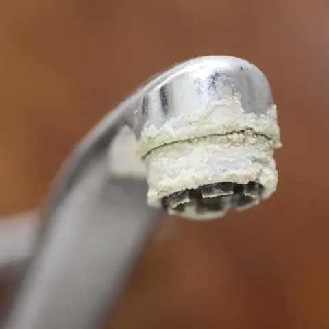 Scale on shower heads and faucet aerators; water heater noise and higher bills.